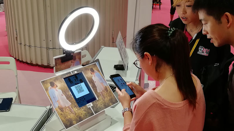 選好主題,隨即製作成貼圖並顯示二維碼。只需下載特製手機程式,掃描二維碼,即可下載無限量使用